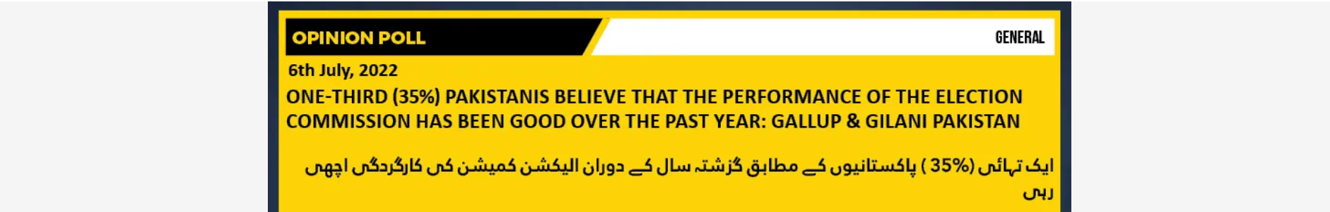 According to a survey conducted by Gallup & Gilani Pakistan, One-third (35%) Pakistanis believe that the performance of the Election Commission has been good over the past year.